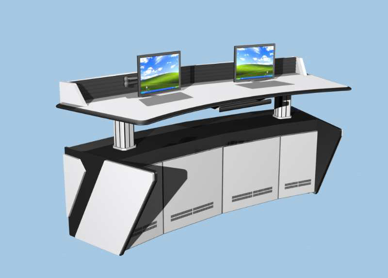 指挥中心升降操作台具有工作面高度可调、内置大容量CPU柜封闭式设计、显示器固定在背板上可随台面一起升降、隐蔽的电缆管道、友好的人机界面、灵活的显示器支臂可配置多监视器等特点。